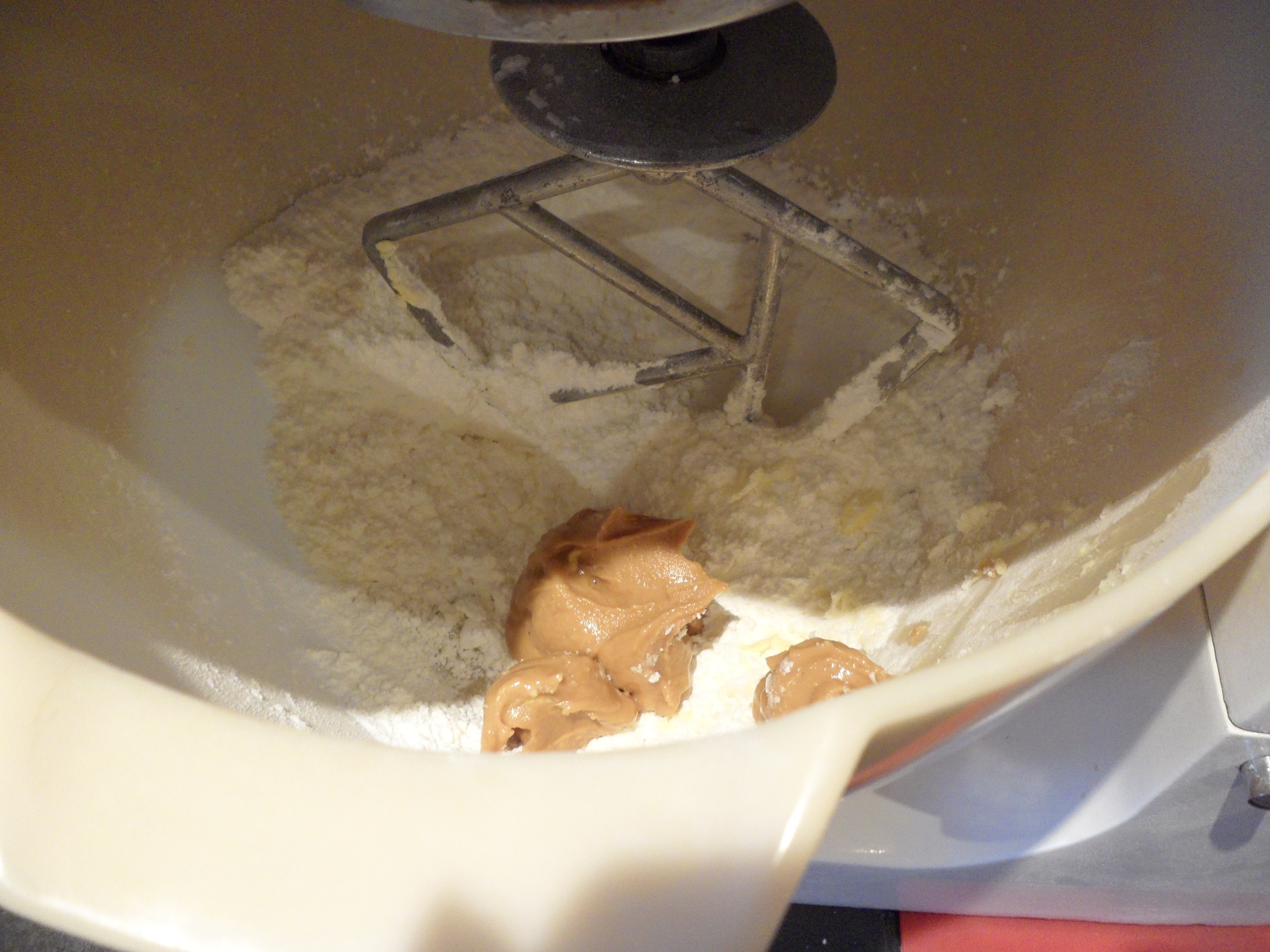Pop the peanut butter in and then add the splash of milk until it comes together…mix on high for 2mins until light and fluffy