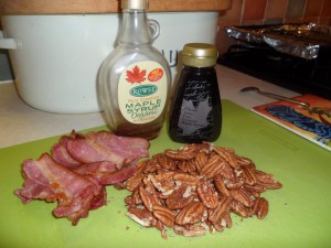 This recipe came in a dream…I jest but you get the gist. I love bacon, I love maple syrup and pecans go well with both so it only seemed to make sense for this concoction to come about. Equally I scoured the web for a fair while and couldn’t find anything like this which left me with a challenge! These are delicious because of the contrasting flavours which marry so well together, what’s more they really feel like a treat and always get a great reaction. Feel free to mess around with the recipe, suggest any changes or shamelessly devour an entire batch…Happy Baking Bacon-ettes!