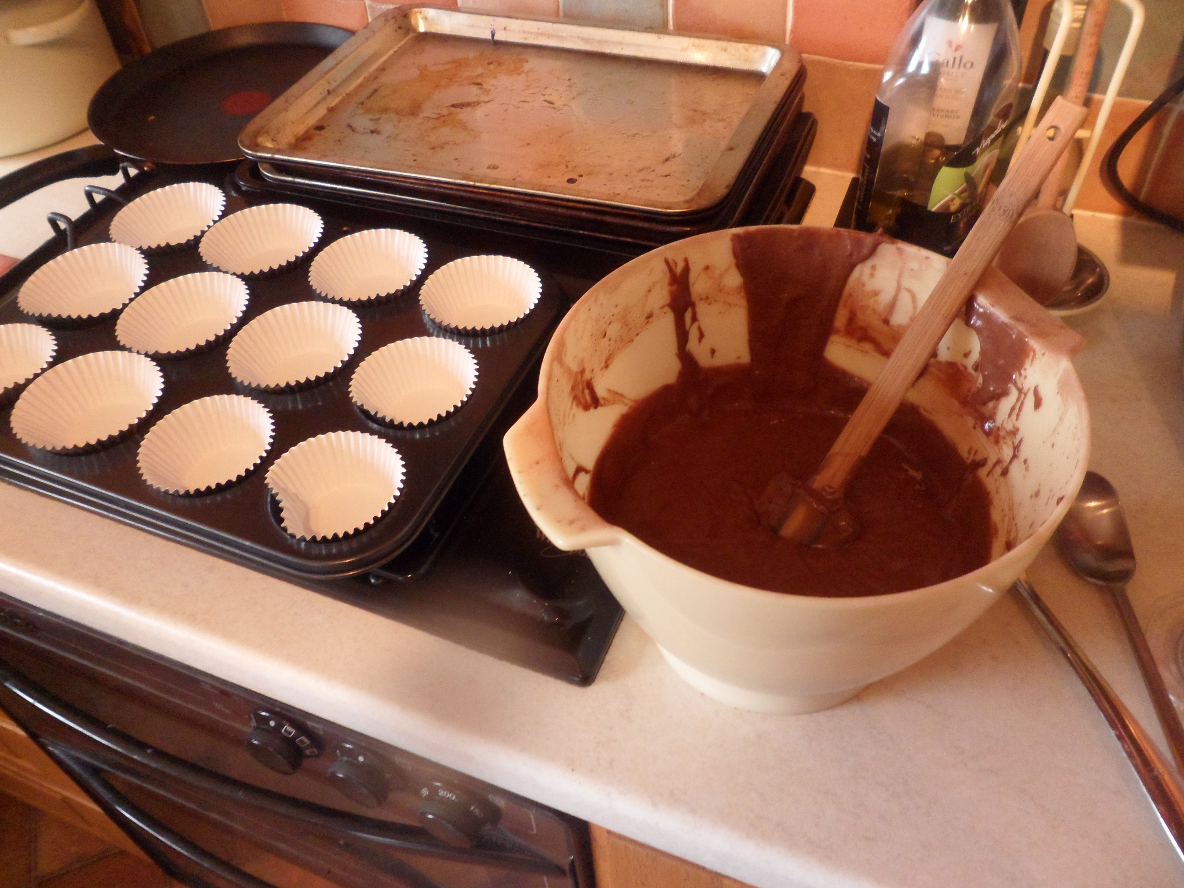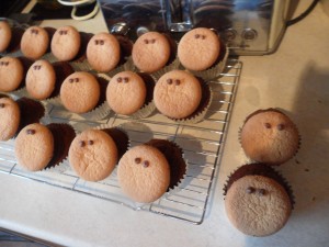 - Spoon the mixture in to cases until they are about 2/3rds full…you want the mixture to rise above the cupcake case when baking to create the monkey’s head.