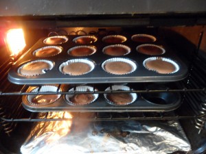 - Preheat the oven to 190degrees and line two 12 hole muffin tins with cases – I chose to use silver as it made them look a little bit more fancy!