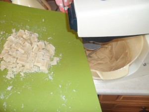 - Cut the white chocolate in to chunks and stir through the mix.