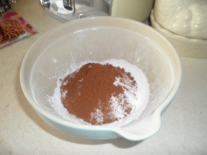 - Sieve your icing sugar and cocoa in to a bowl and pour the melted mixture on top.