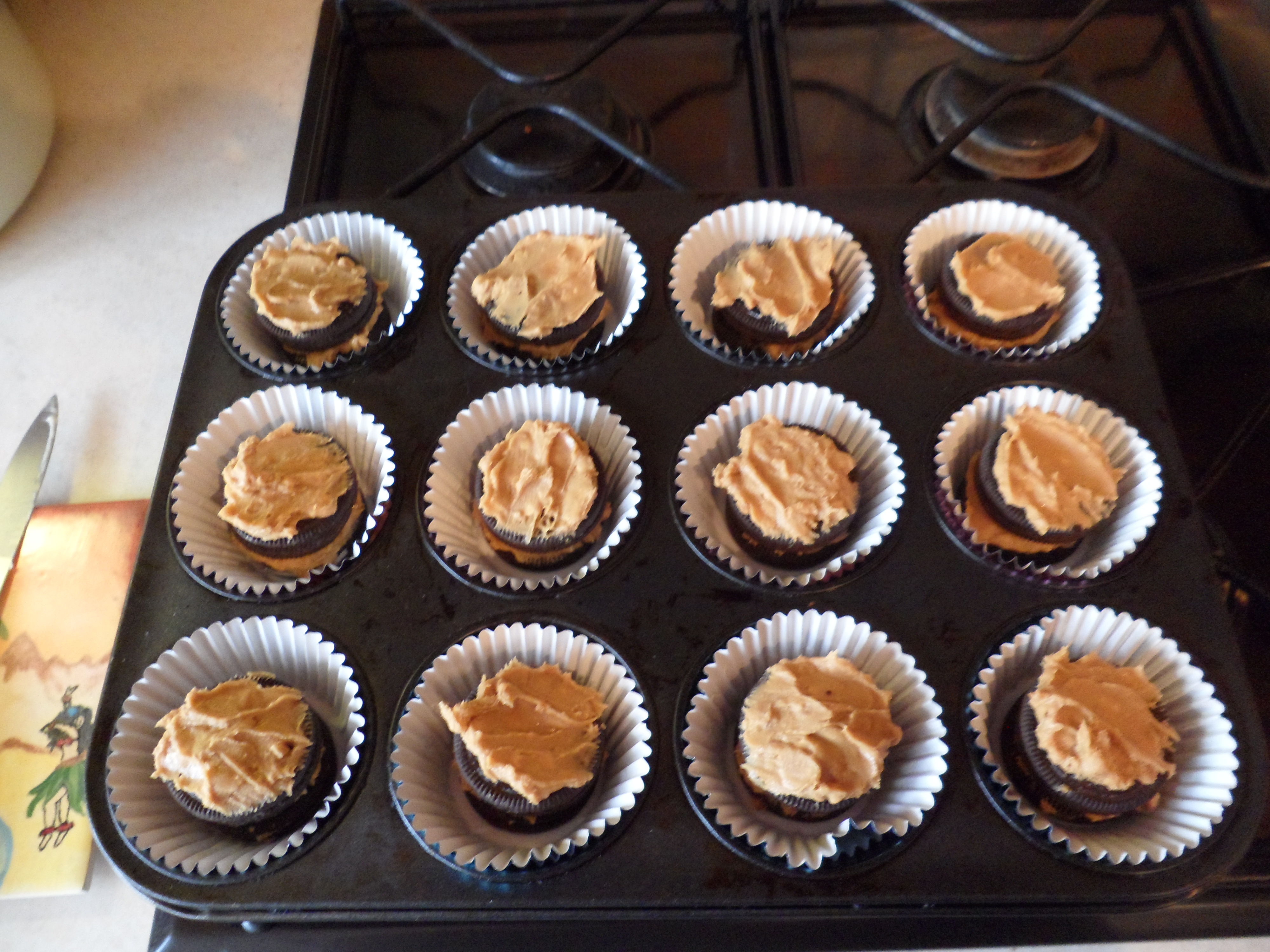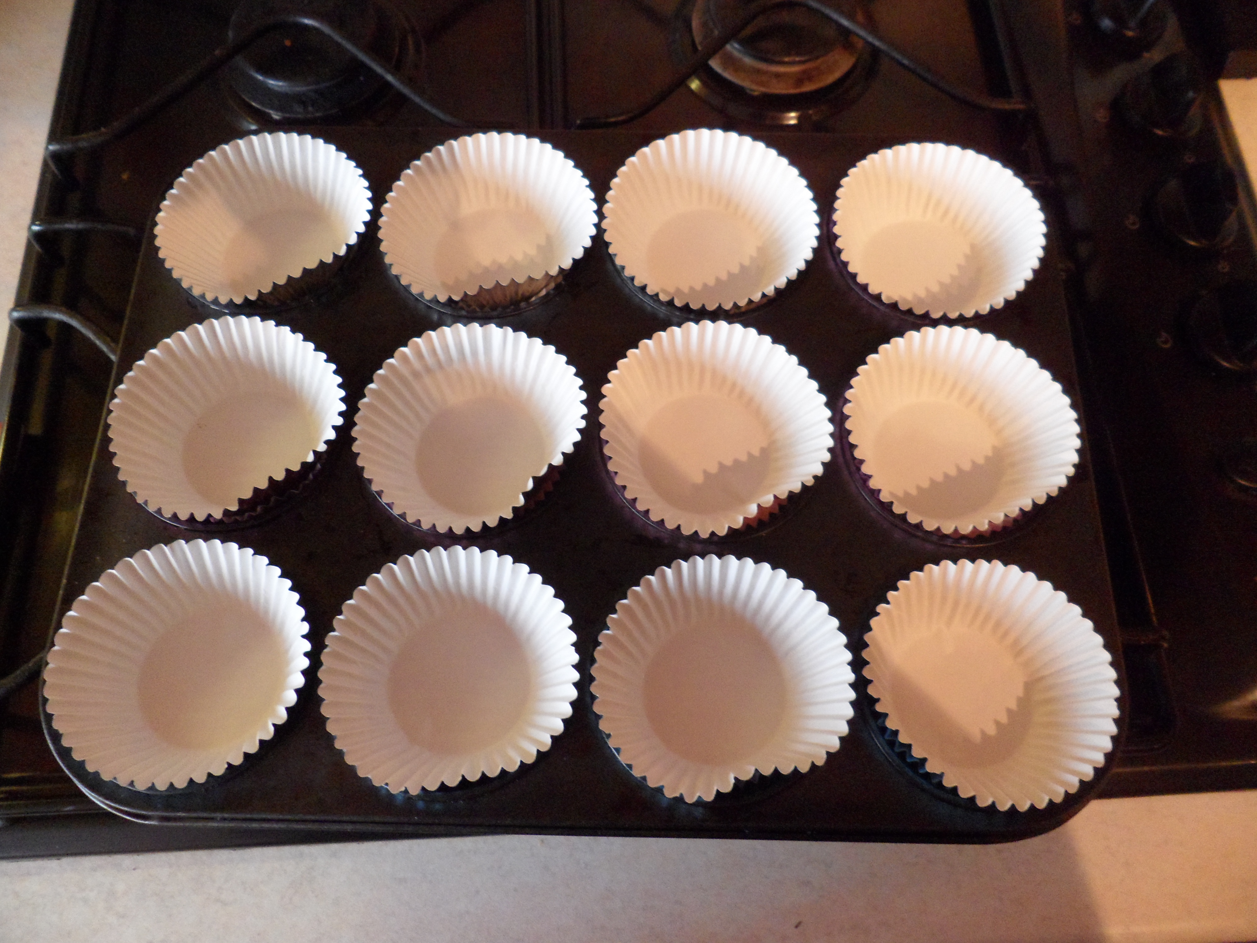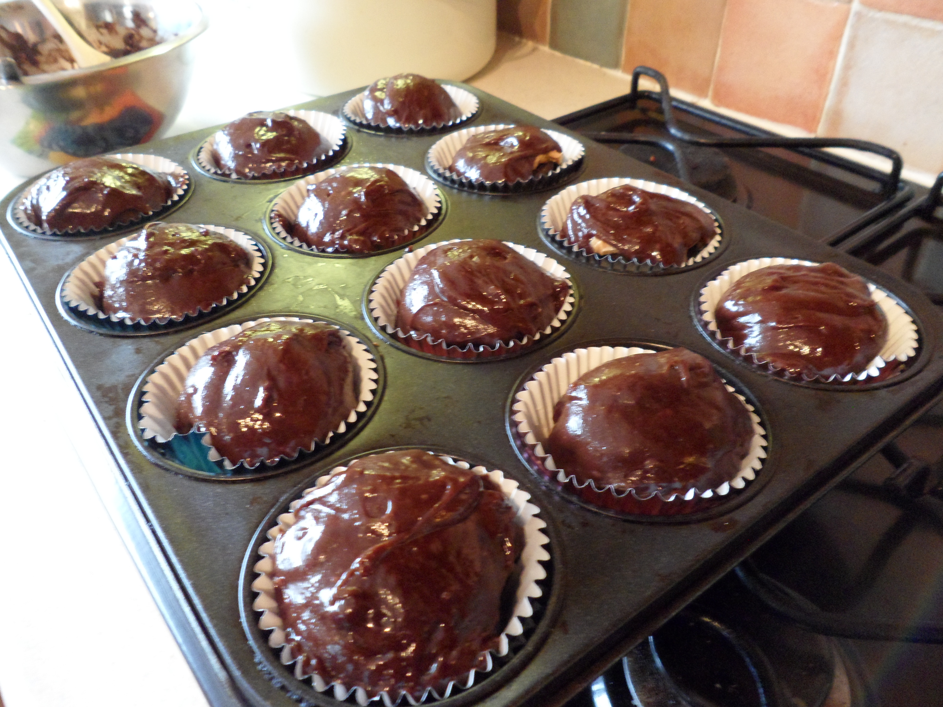 Carefully manoeuvre these beauties in to the cases and keep them central to allow the brownie mix to drip down the sides.