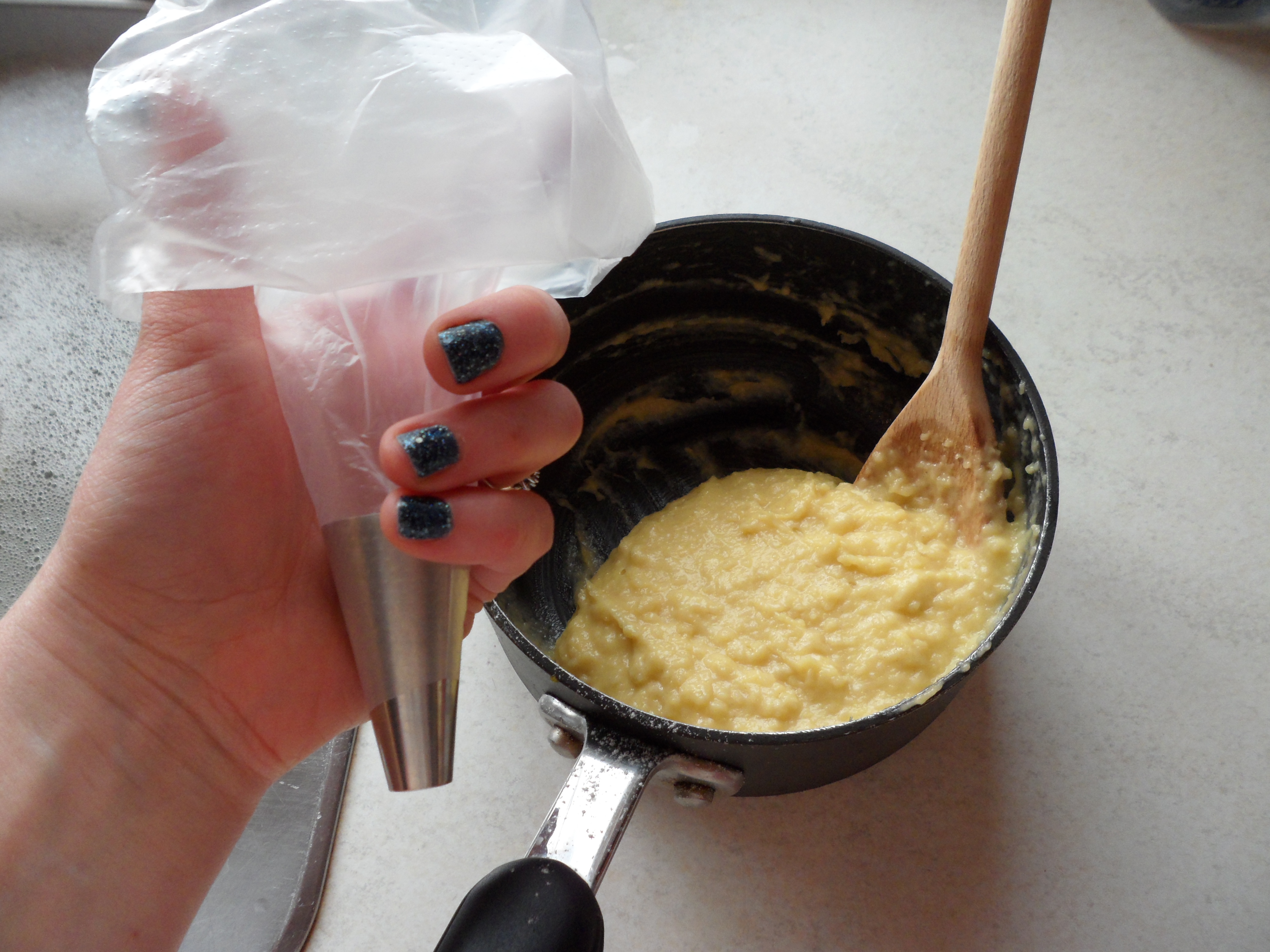 Now to put it in the piping bag. Spoon the mix in and ask for help if you may do a ‘Zoe’ and potentially spill it everywhere