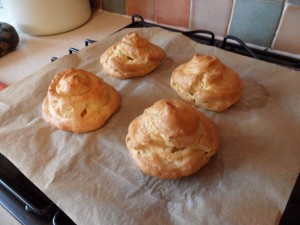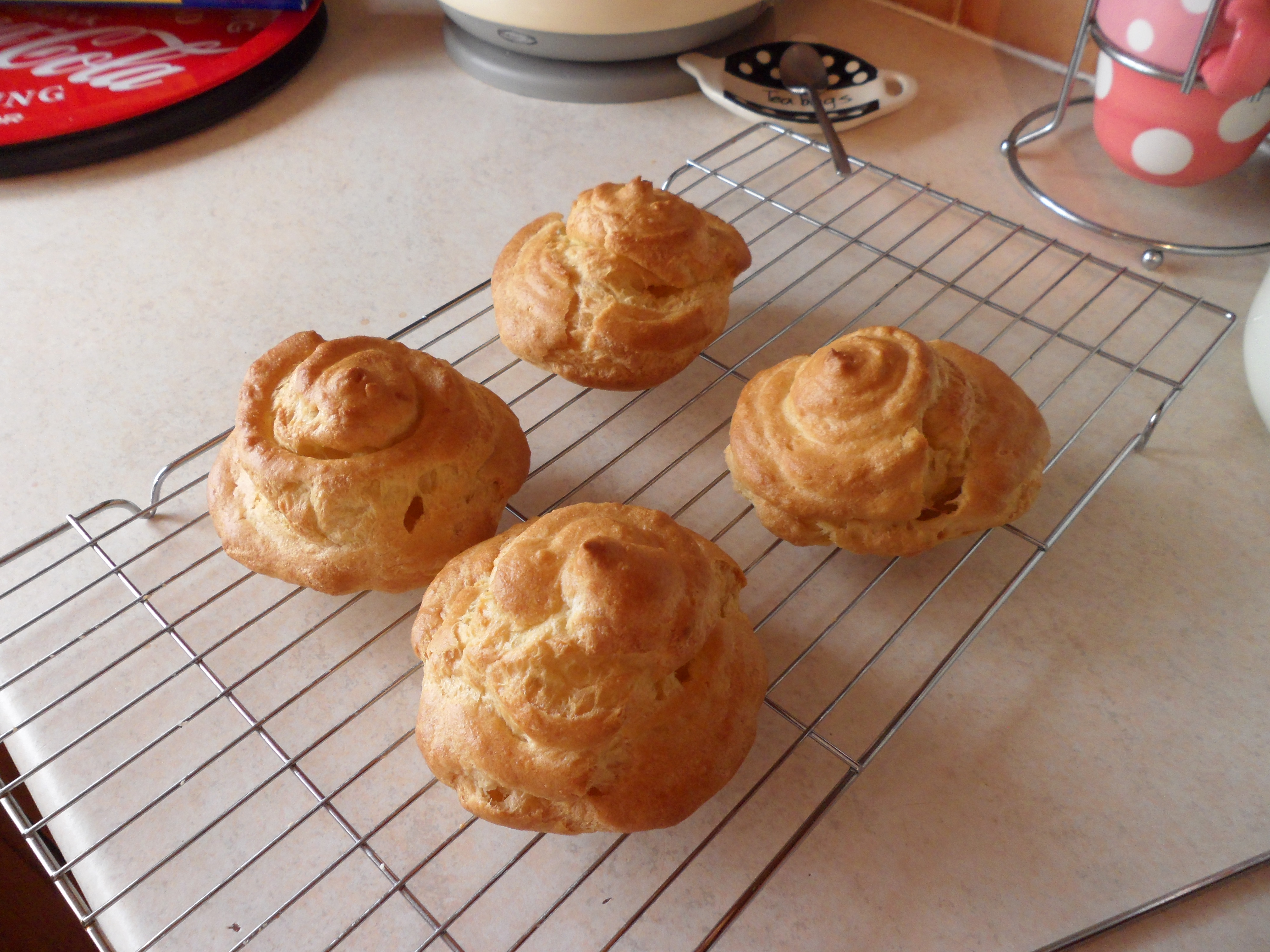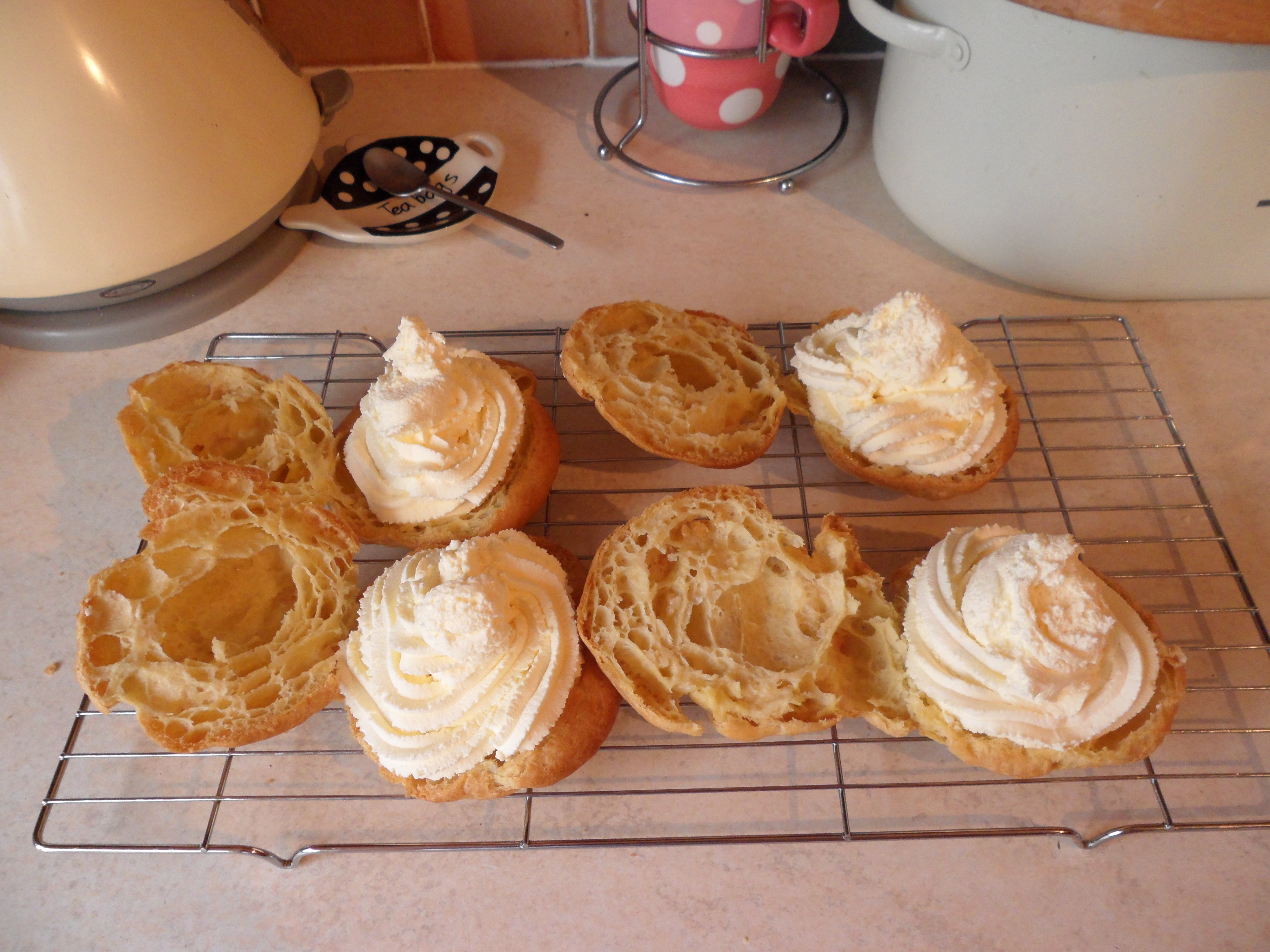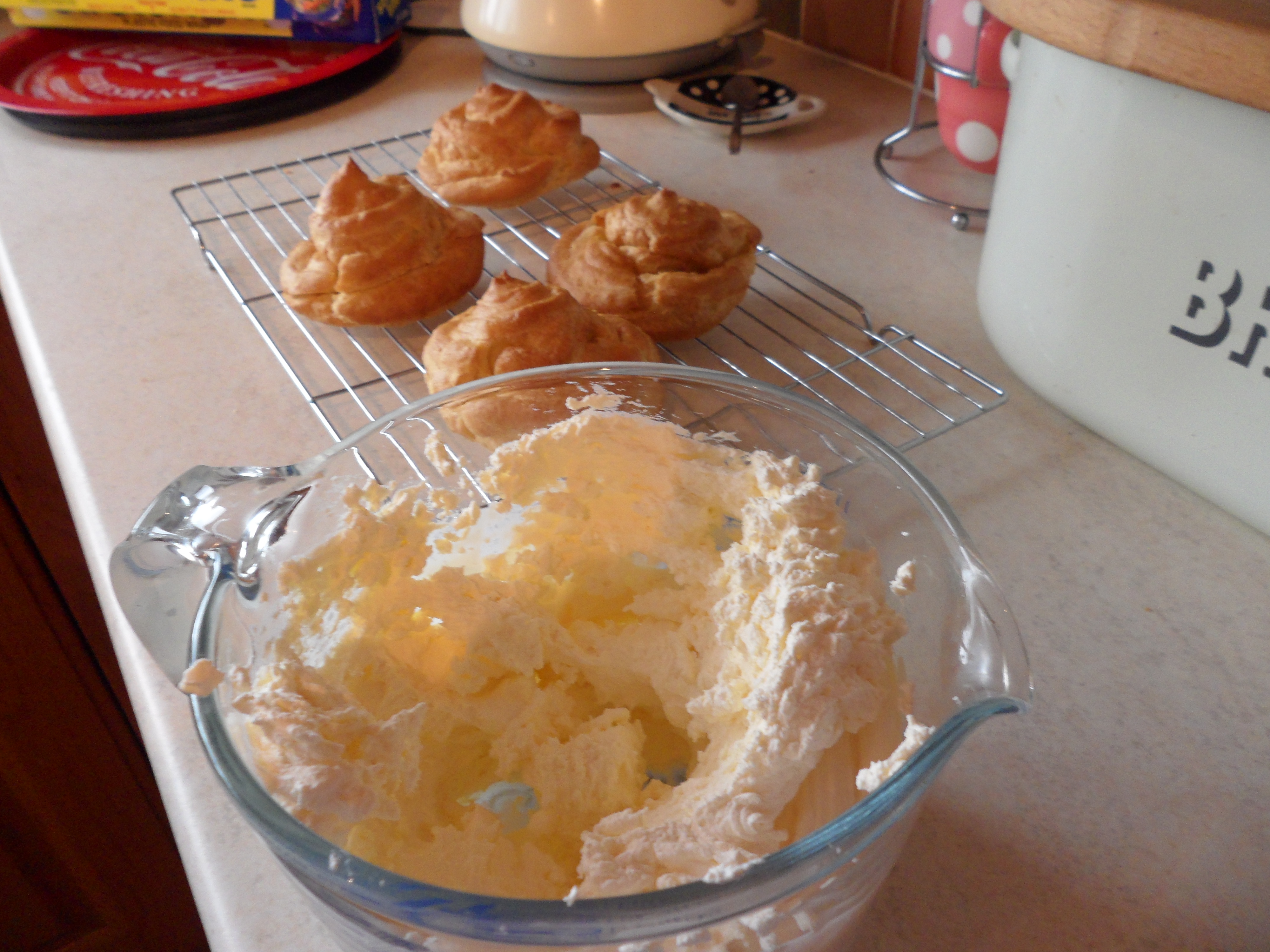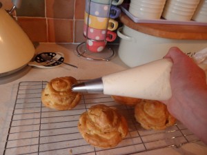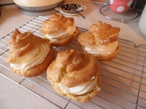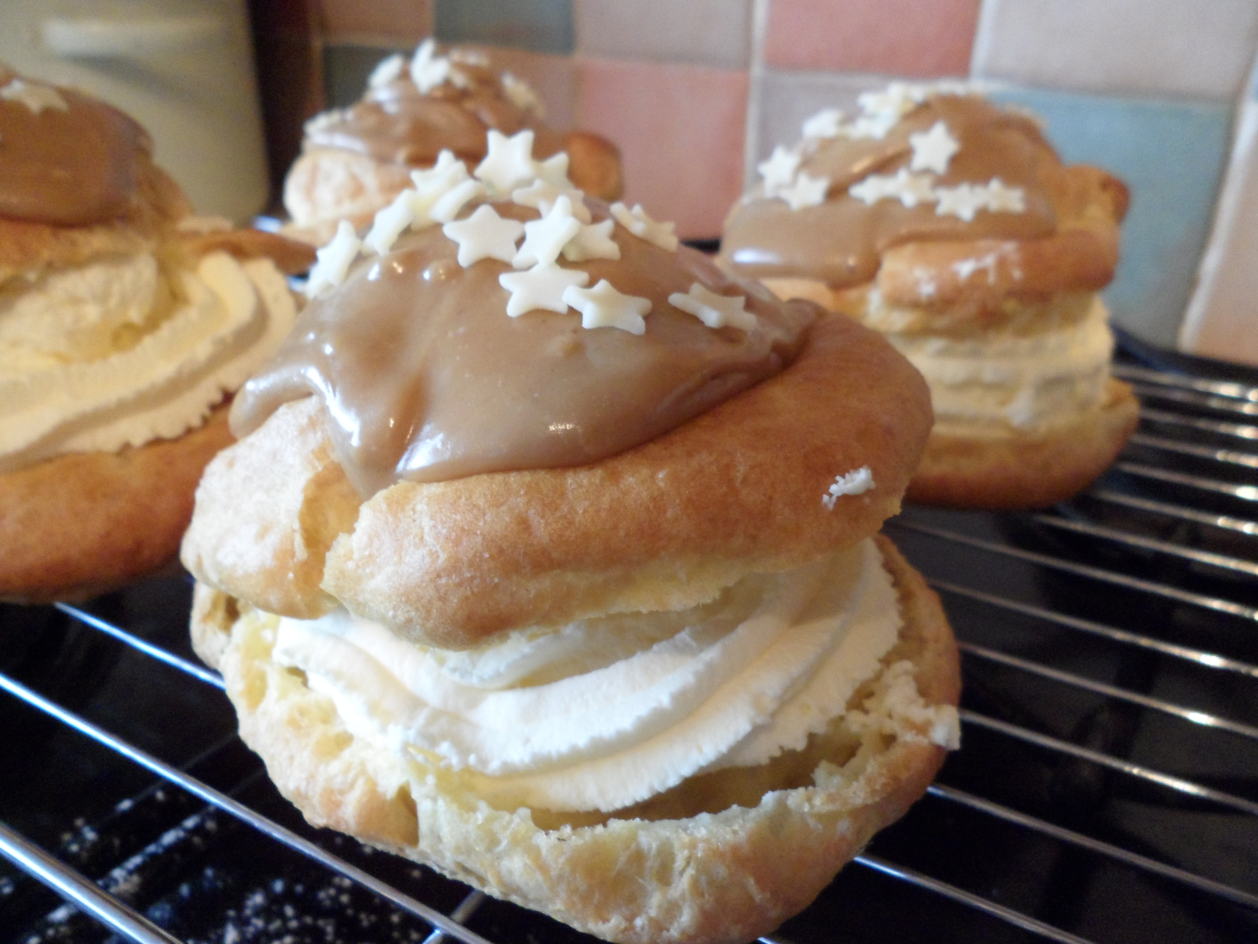 Delicious choux pastry filled with whipped double cream and topped with a caramel icing!! Mmmmmmm!!!