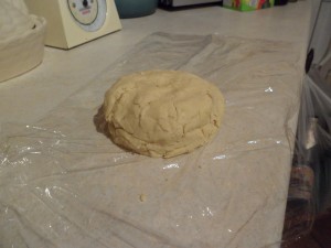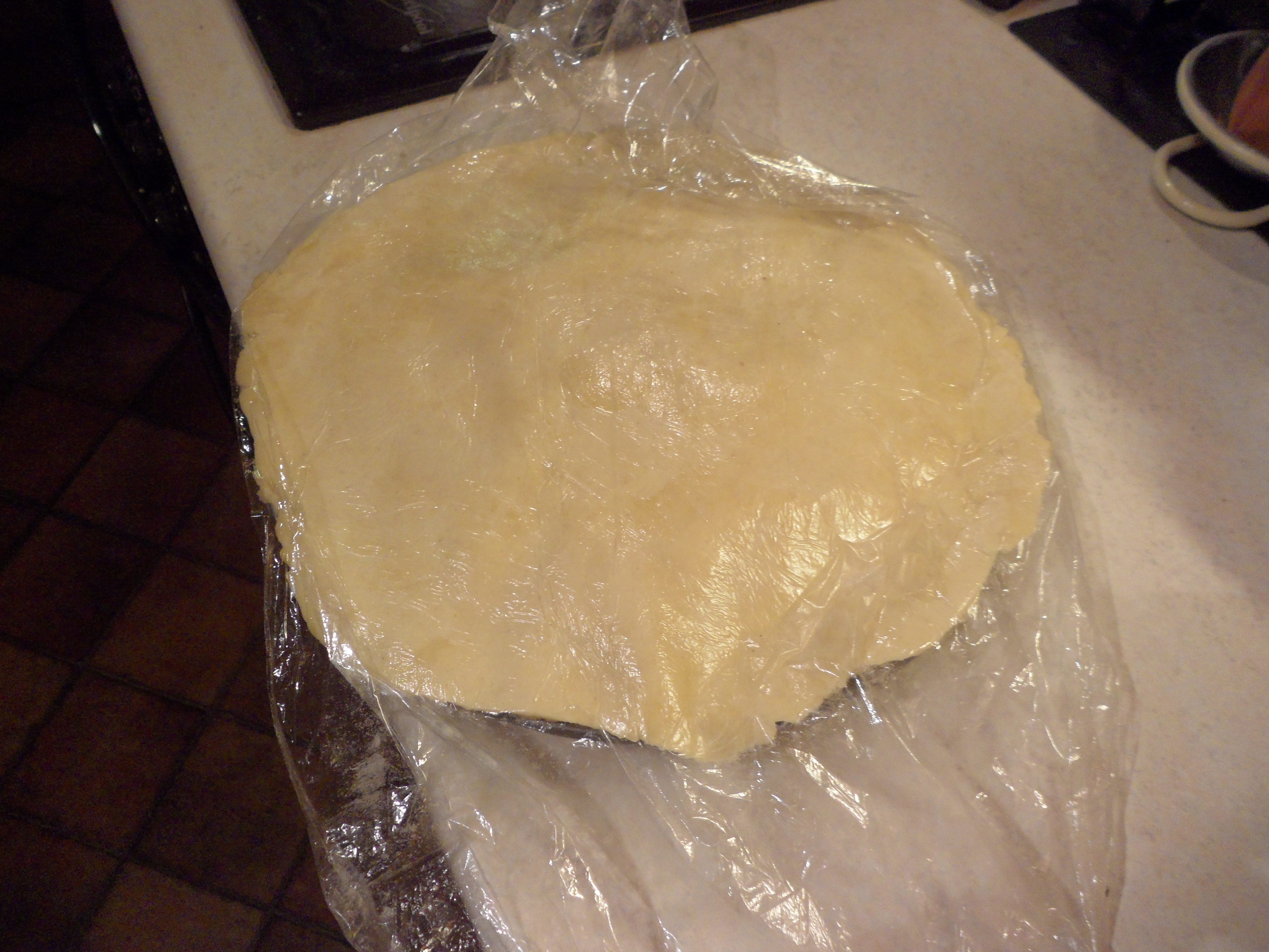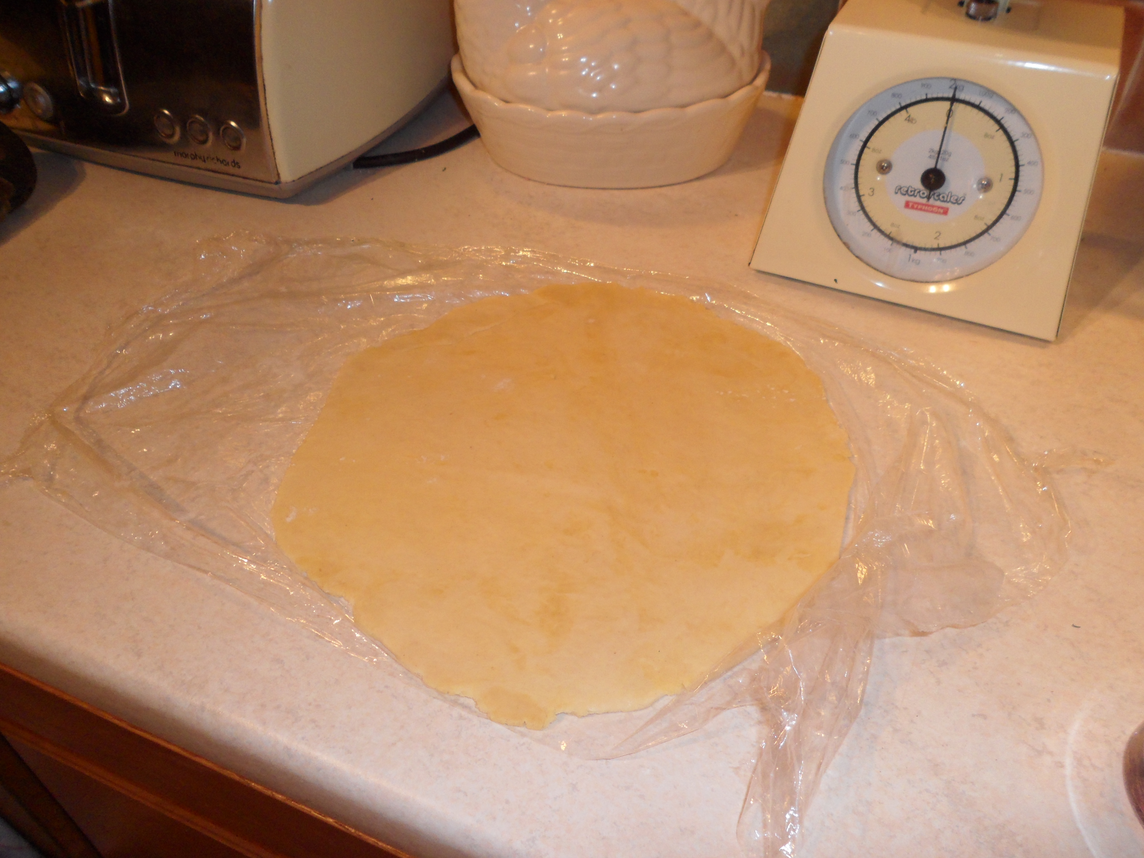 Meanwhile roll our the lid for the pie…I did this between 2 sheets of cling film which makes it easier to add to the top of the pie