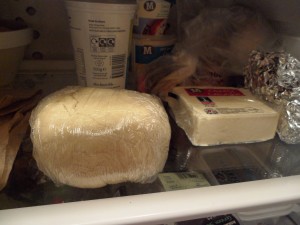 Here is the combined Lancashire and Cheddar…purely due to the dry, crumbly nature of Lancashire it needs extra binding through the cheddar which is stringier