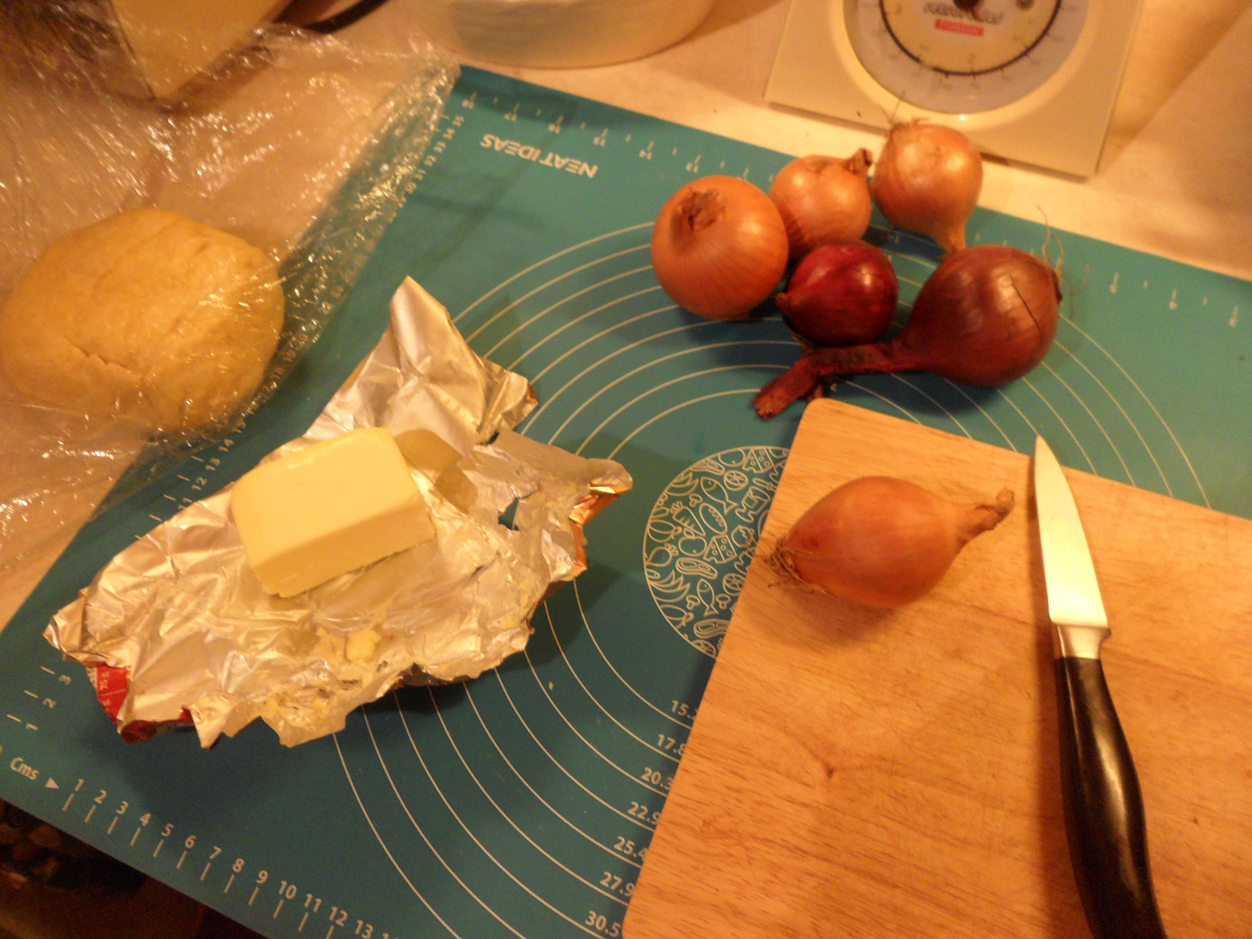 This pie will need to made in a 25cm pie dish or tin, but if you prefer a much chunkie pie you can reduce the size of the tin by a cm or so. You can alter the onions and herbs depending on what you like the best and I reckon herbs in the pastry would make this dish even more delicious!