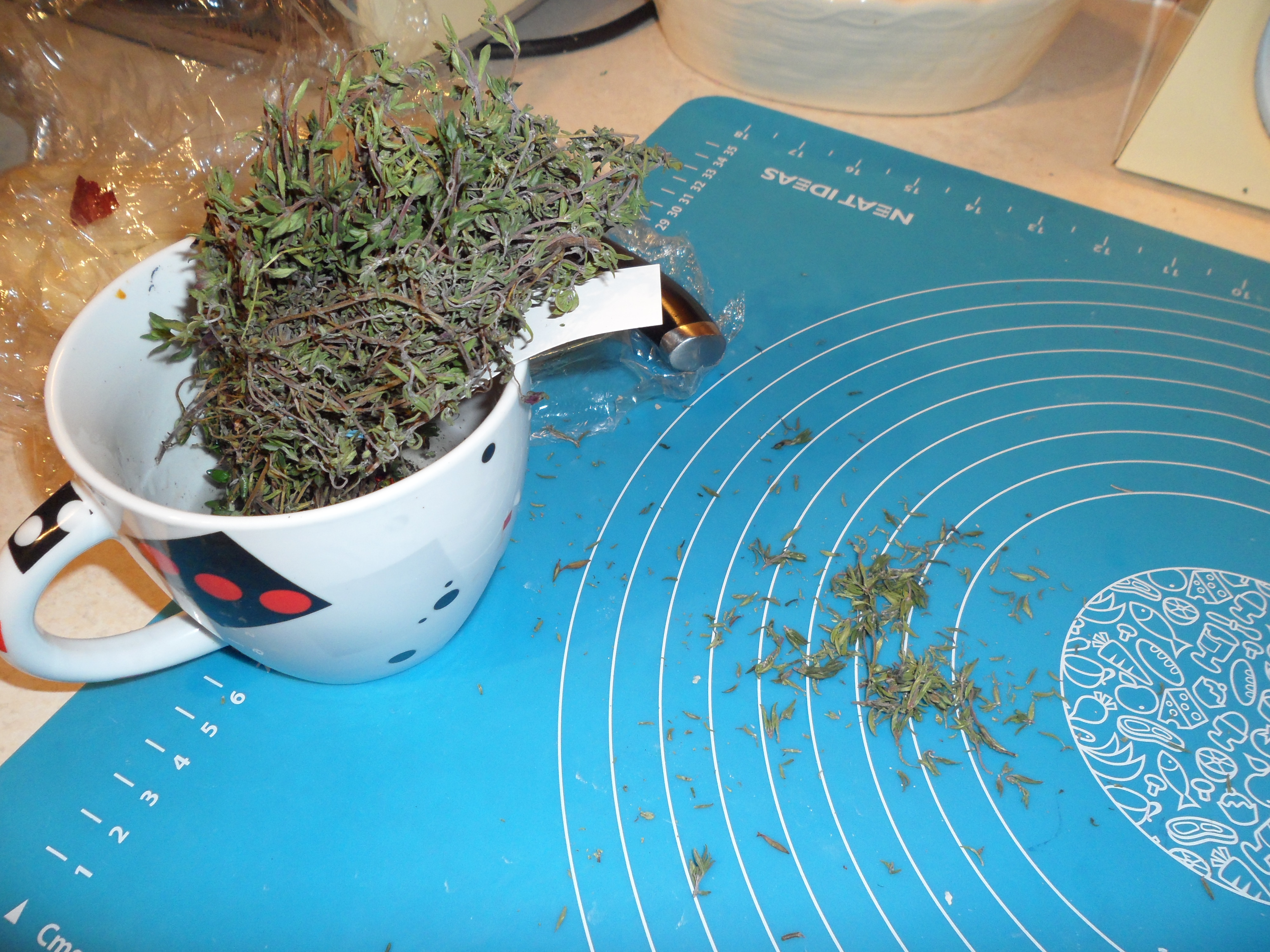 Now start to pluck the thyme leaves off your fresh time…dry thyme is fine but fresh is always better