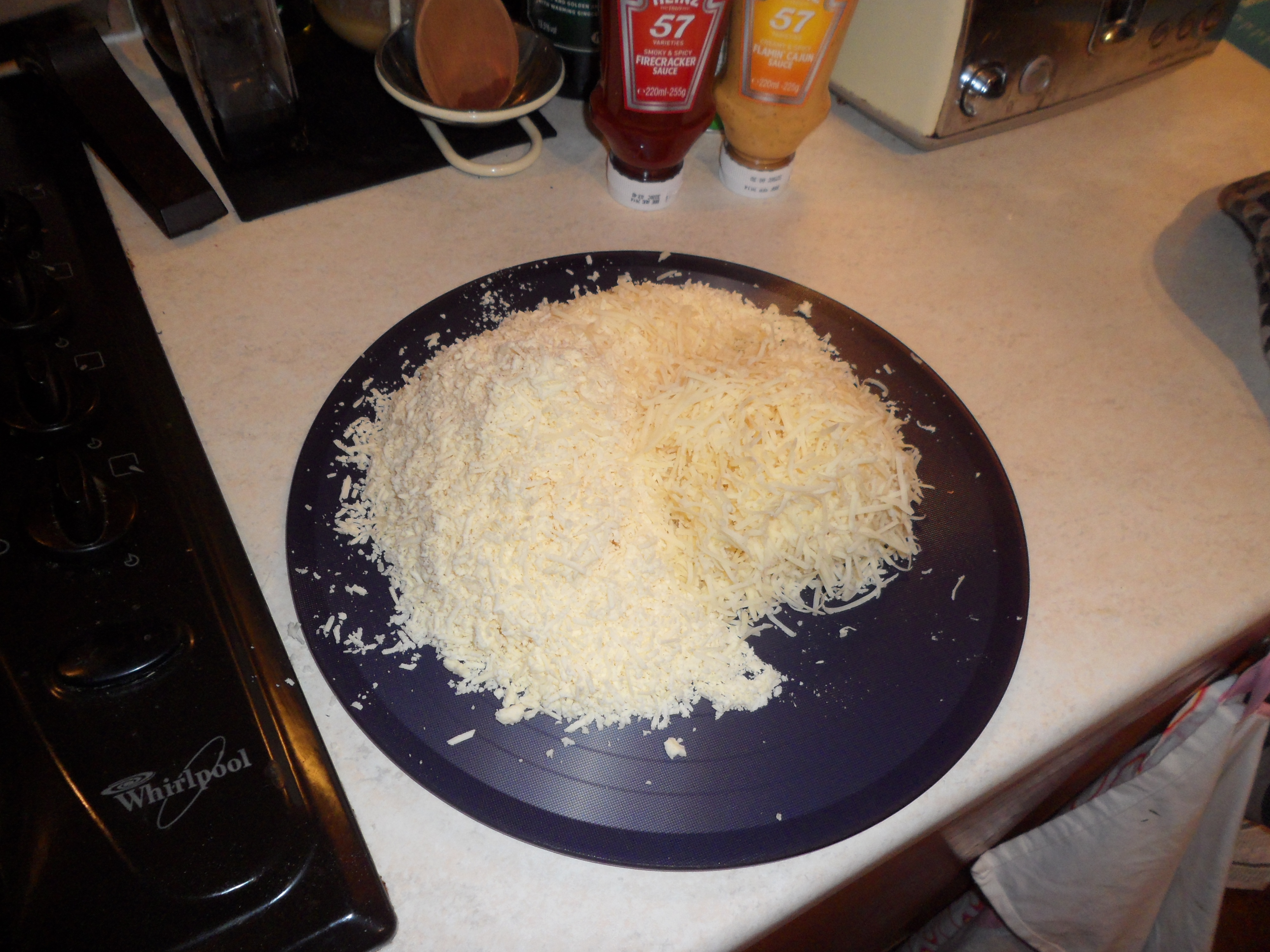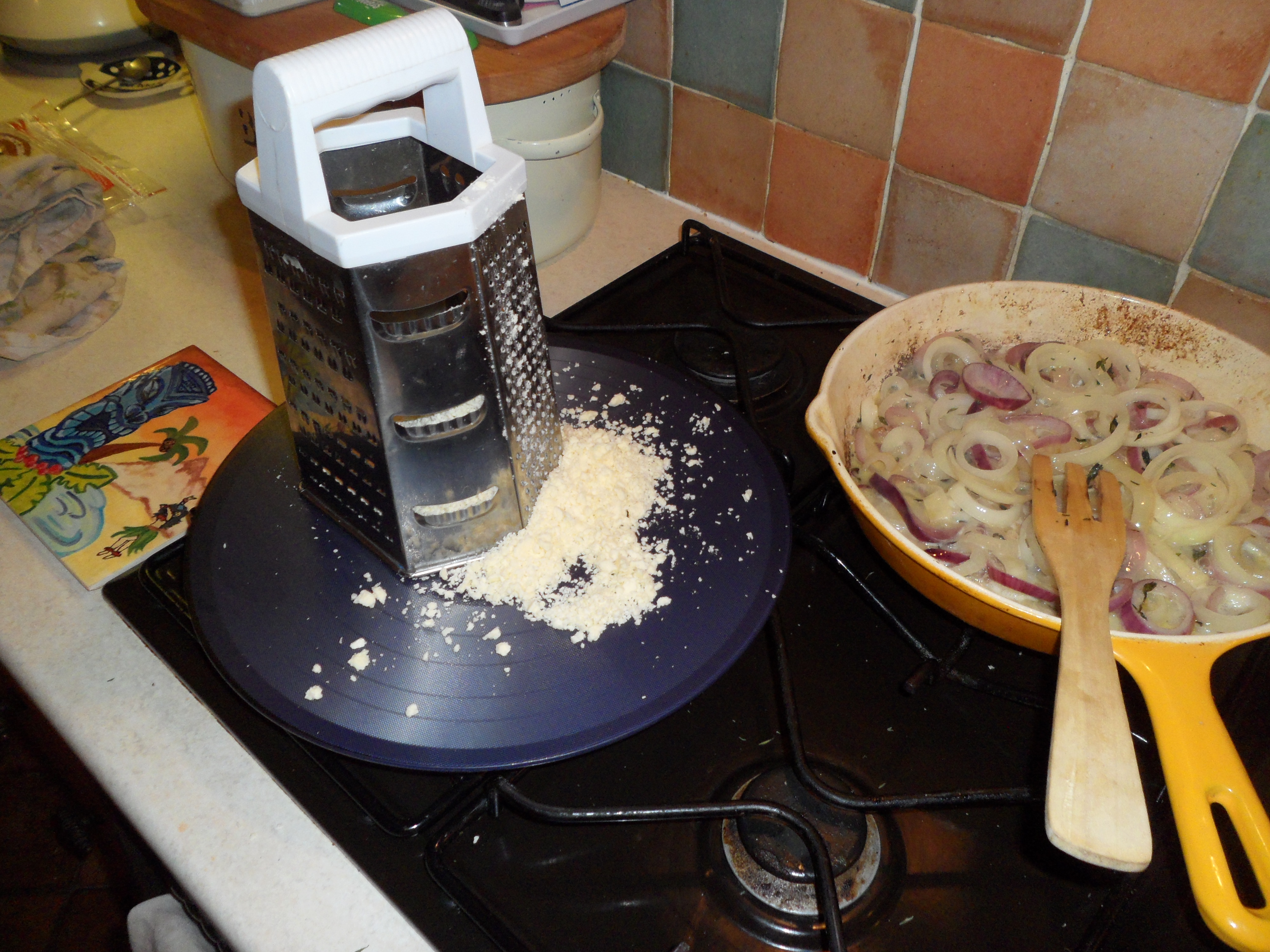 Next comes the cheese…mixed up…then onions, then cheese again! Yes that does look like a cheese mound of pie goodness!!