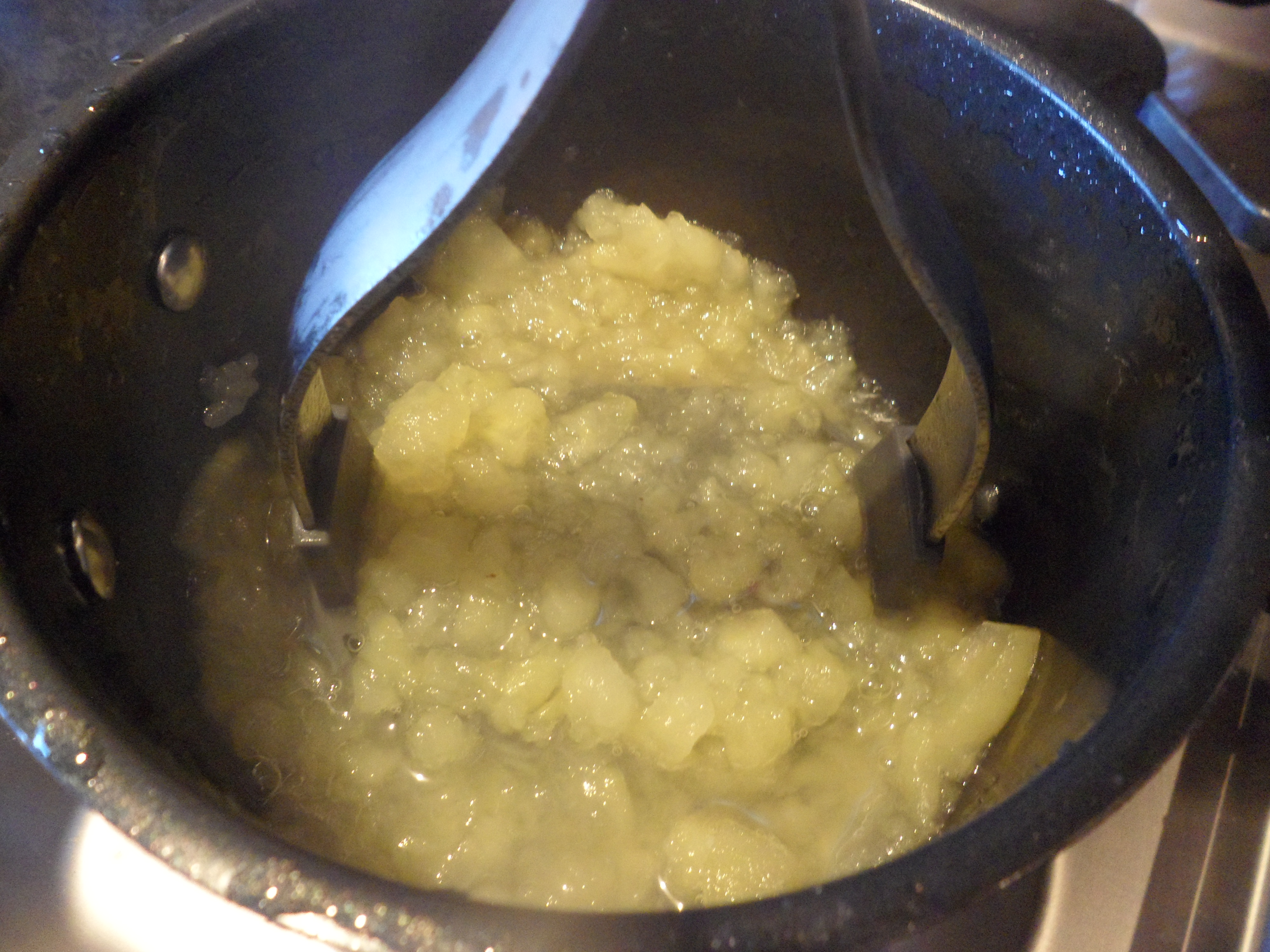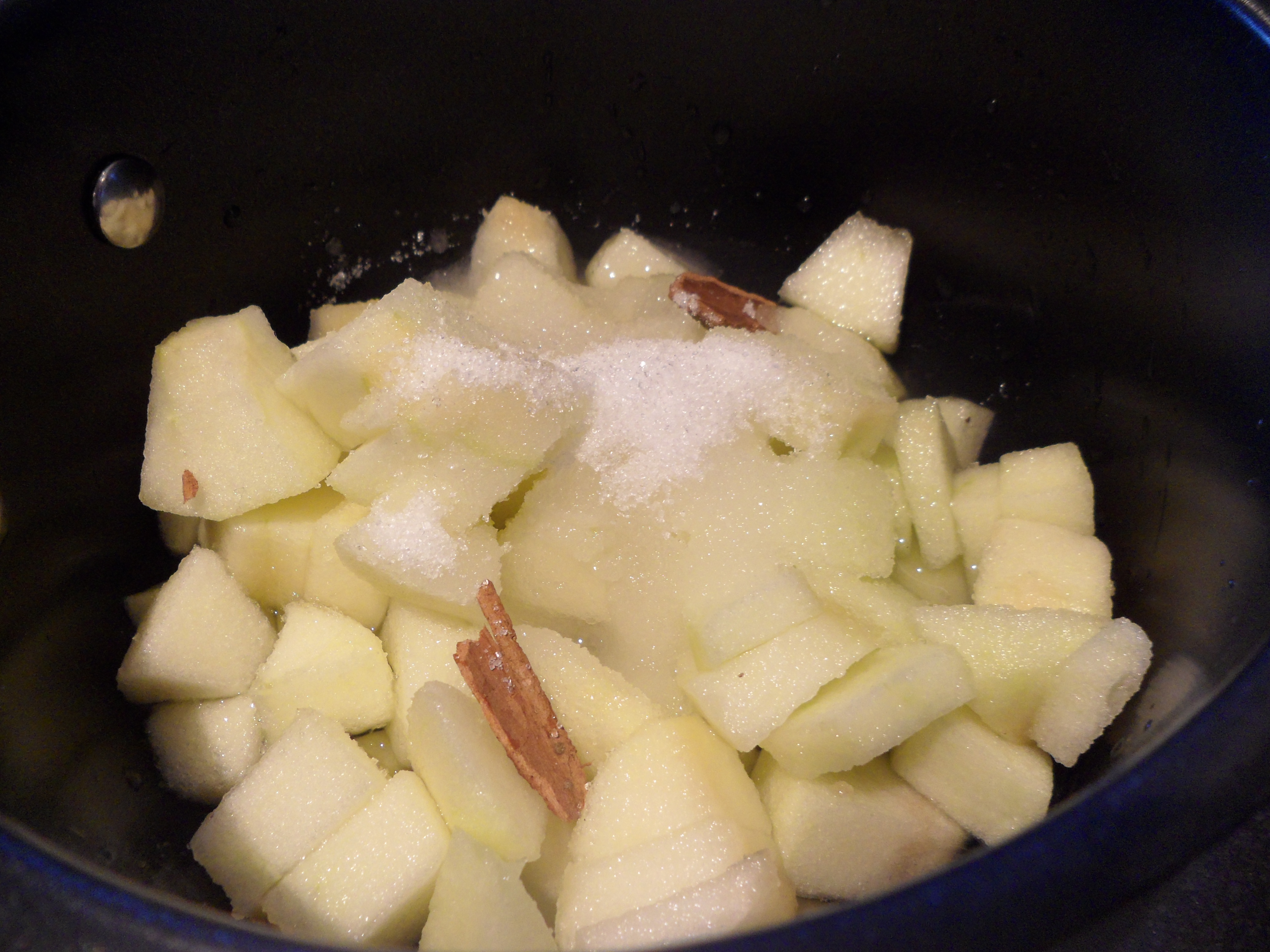 Boil up and simmer. After 10mins mash the apples, then add 2tbsp of sugar…allow to simmer for 5mins more and then allow to cool