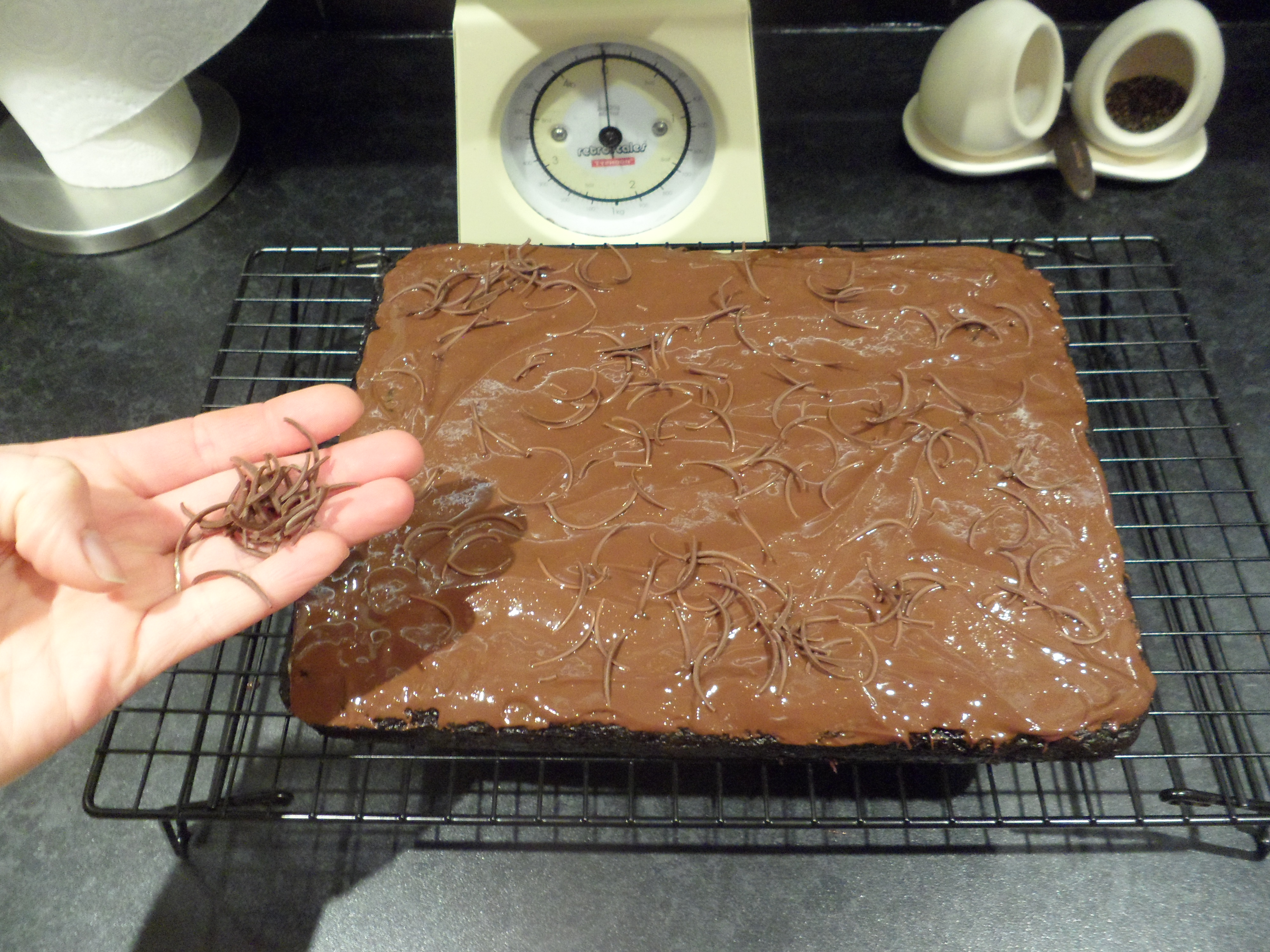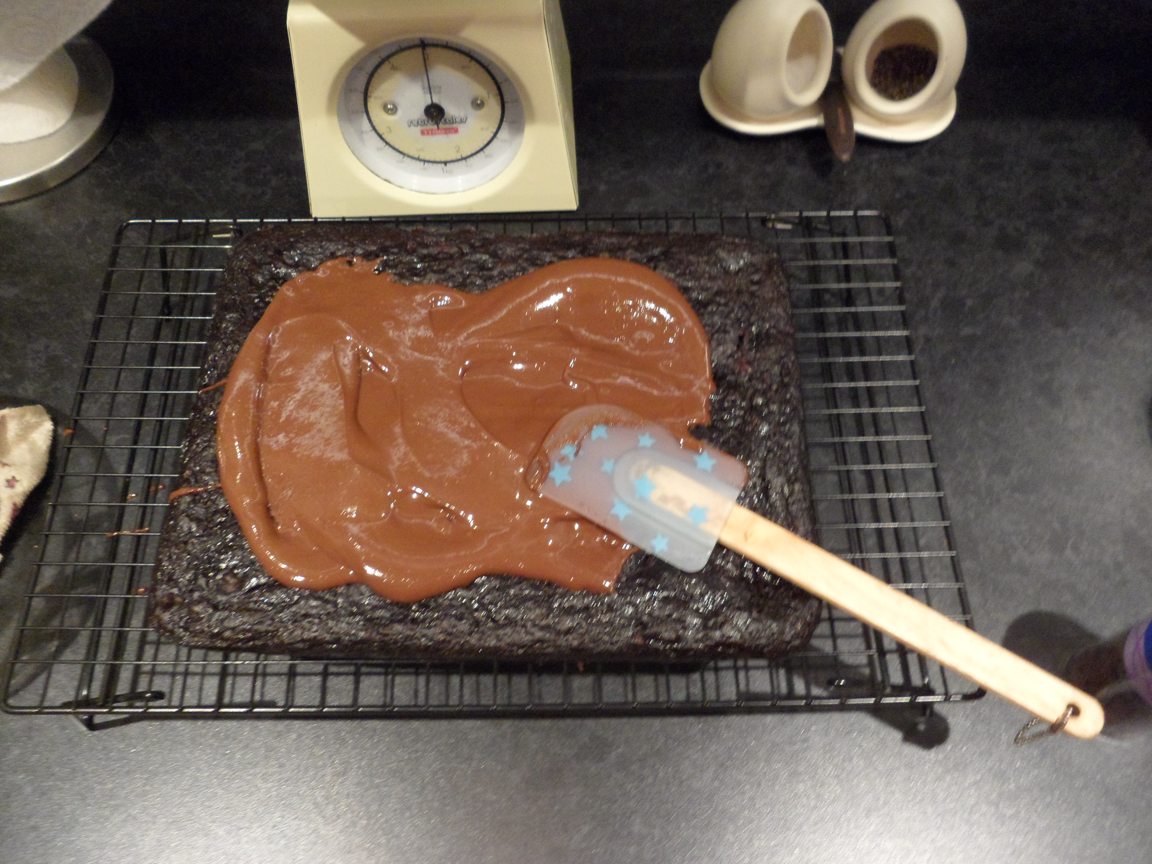 - Frosting made from 60g dark chocolate and 1 and 1/2tbsp smooth peanut butter